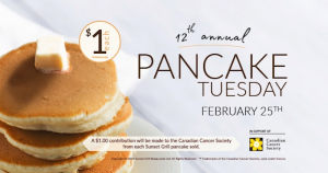 아주 달콤하고 저렴한 아침식사를 맛볼 수 있는 기회가 생겼습니다. 바로 다가오는 2월 25일날 Sunset Grill에서 팬케이크를 단 $1에 판매하기 때문이죠. 또한 이 행사를 통해서 벌여지는 수익은 Canadian Cancer Society에 기부되어진다고 하니 그 의미가 더 깊지 않을까 싶은데요. 온타리오에 있는 S...