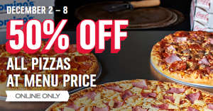 크리스마스가 오는 12월을 맞이하여, 유명 피자 브랜드 도미노 피자에서 반값 할인 이벤트를 진행 중입니다. 기간은 12월 2일부터 8일까지 단 7일!할인 품목은 모든 일반 메뉴며, 따로 프로모션 코드를 넣을 필요 없이 50% 할인이&...