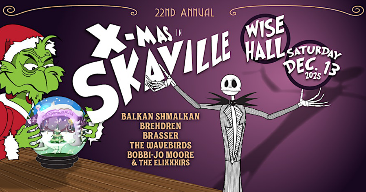 와이즈 홀에서 열리는 ‘크리스마스 인 스카빌’이 올해로 22회를 맞는다. 발칸 슈말칸, 브레드렌, 브래서, 더 웨이브버즈, 보비 조 무어 & 더 엘릭시어스 등 다채로운 팀이 무대에 오르며, 한겨울 밤을 뜨겁게 만들 예정이다.