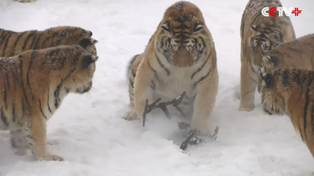 사육사가 주는 먹이만 받아먹다 보니 운동 부족으로 심하게 찐 시베리아 호랑이들을 드론을 사냥하게 해 운동을 시킨 것입니다.